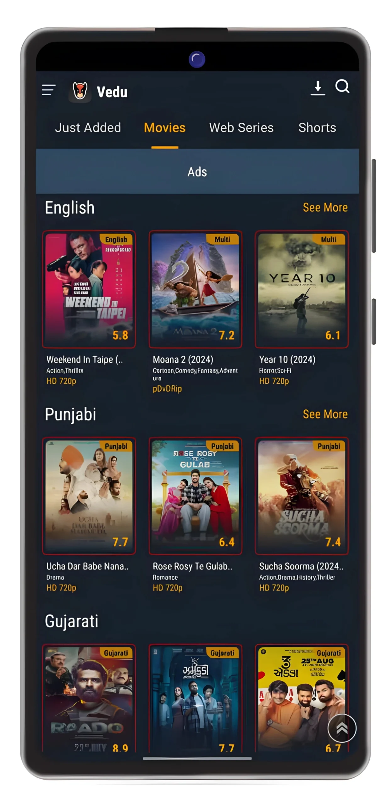 The Vedu app is directly usable even for newcomers. Anyone can utilise Vedu.apk without any limitations or skills. All things are planned, surely, on the homepage. Movies and video shows are also shown in many languages. Just enter your desired films or series by name to get them directly.